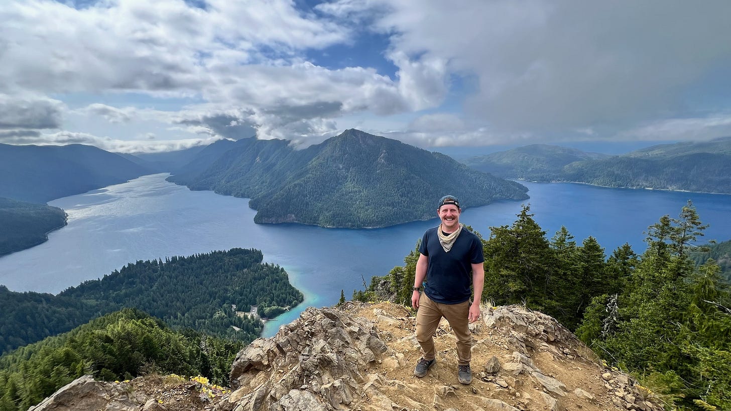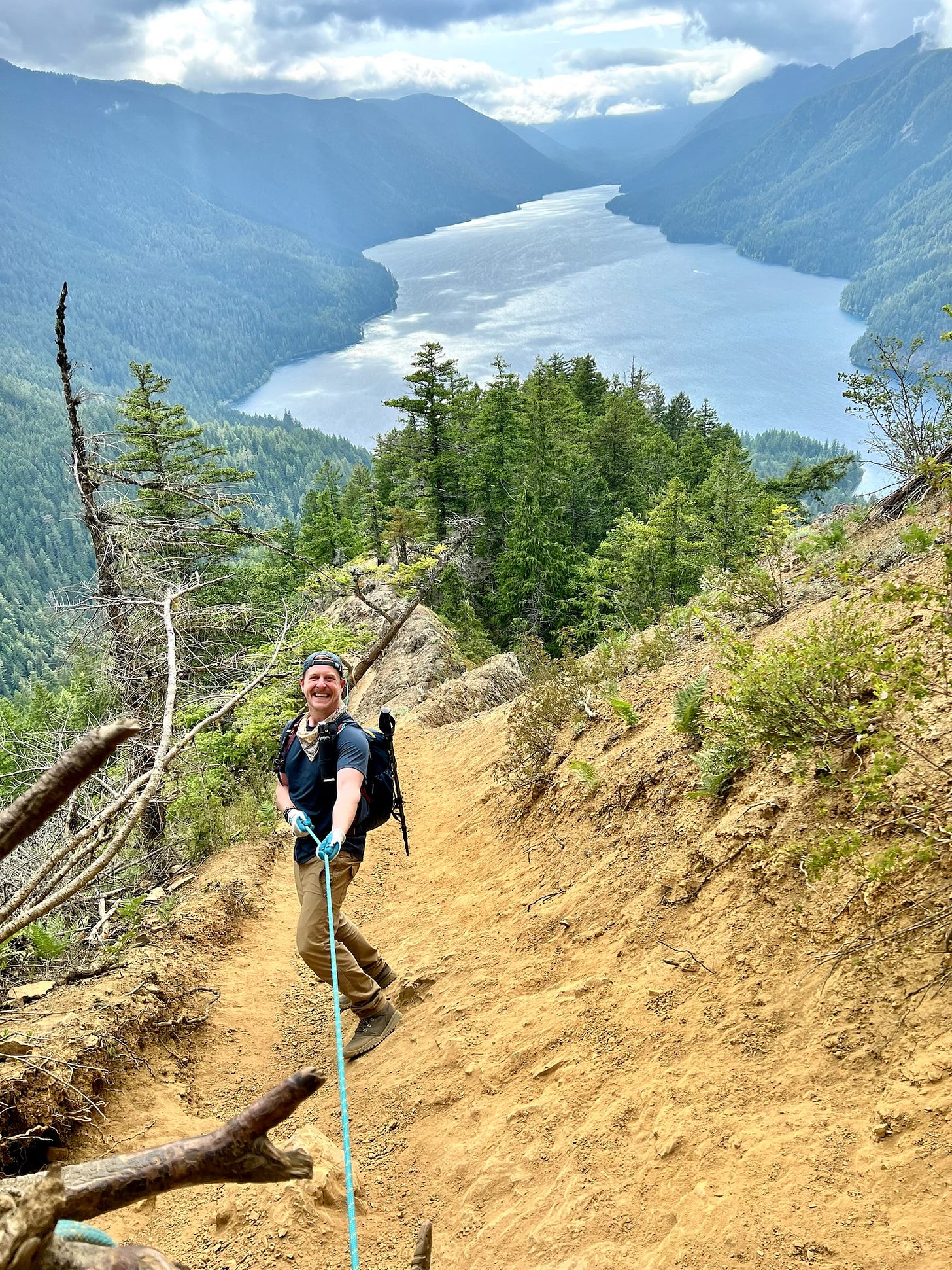 But Taylor pushed on and made the final sweaty scramble (aided by years of climbing experience and comfort) and pulled himself up to breathtaking views out over Lake Crescent and the Strait of Juan de Fuca in the distance. Equally-euphoric fellow climbers traded offers for photos from the summit.